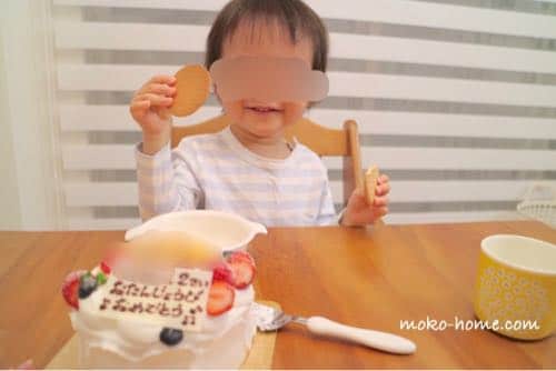 2歳の誕生日ケーキ|ケーキよりビスケットに喜ぶ息子