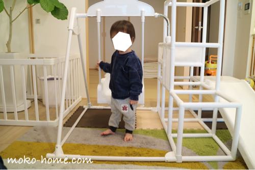 部屋の幅を取る以外に、ジャングルジムがあることで、お外遊びに行く頻度がすこし減ったような気がします。
