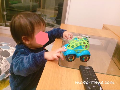 我が家は1歳の誕生日に購入して、始めは掴むだけでしたが、1歳7ヶ月くらいからは並べたり、組み立てようとしたりして楽しく遊んでいます。